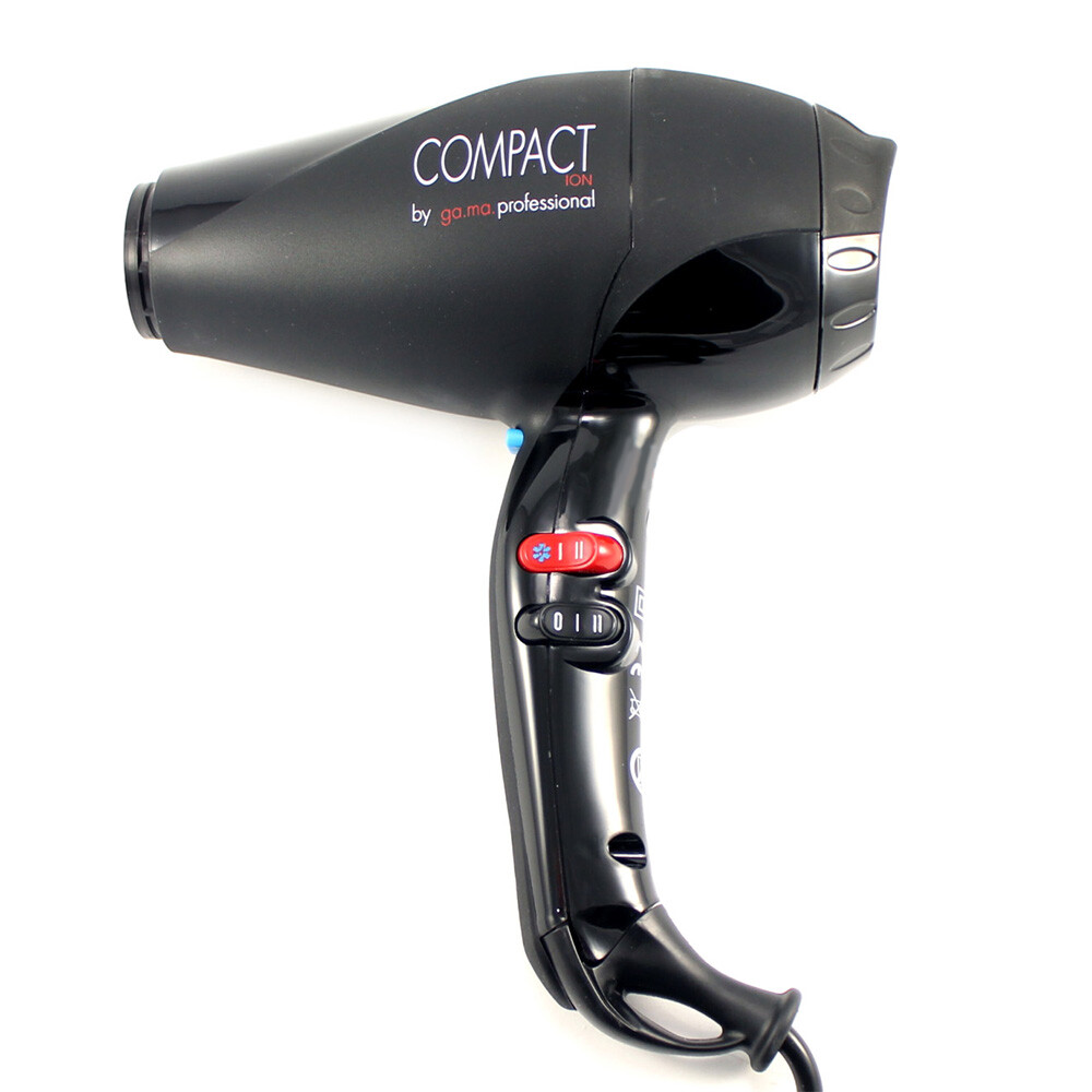 Gama Pluma Compact ION это профессиональный фен для сушки и укладки волос, оснащенный мотором мощностью 2400 W с продолжительным сроком службы. Компактный многофункциональный фен черного цвета станет отличным решением для командировок, путешествий и просто для каждодневного применения. Теперь процесс сушки и укладки волос превратится для Вас в комфортное удовольствие.4 температурных режима, 2 скорости и холодный обдув .